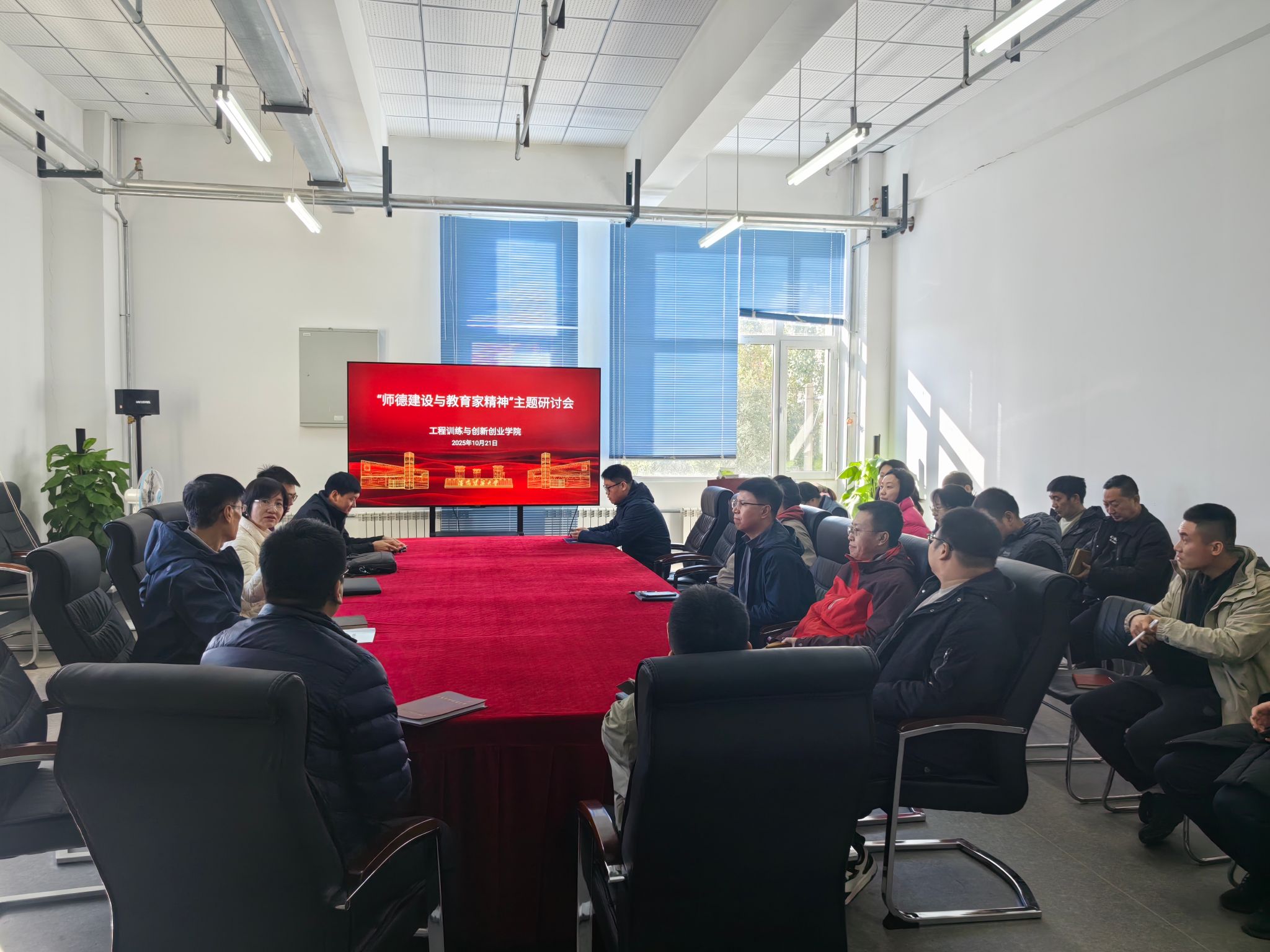 为深入贯彻落实学校师德建设月工作部署,进一步加强师德师风建设,弘扬践行教育家精神,10月21日,工程训练与创新创业学院组织召开了“师德建设与教育家精神”主题研讨会。会议旨在引导全体教职工深刻理解师德内涵与时代要求,不断提升他们的育人本领和职业素养。