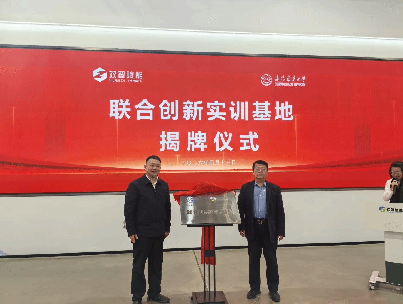 会上,刘佳、孙东辰分别致辞。刘佳、栾方军共同为“沈阳建筑大学·辽宁双智数字赋能中心联合创新实训基地”揭牌。周鹏、孙东辰签署合作协议。仪式期间还举行了企业数字转型专家聘任仪式。签约仪式结束后,全体参会人员参观了辽宁双智数字赋能中心。工创学院、教务处、计算机学院负责人及工创学院全体教师参加活动。